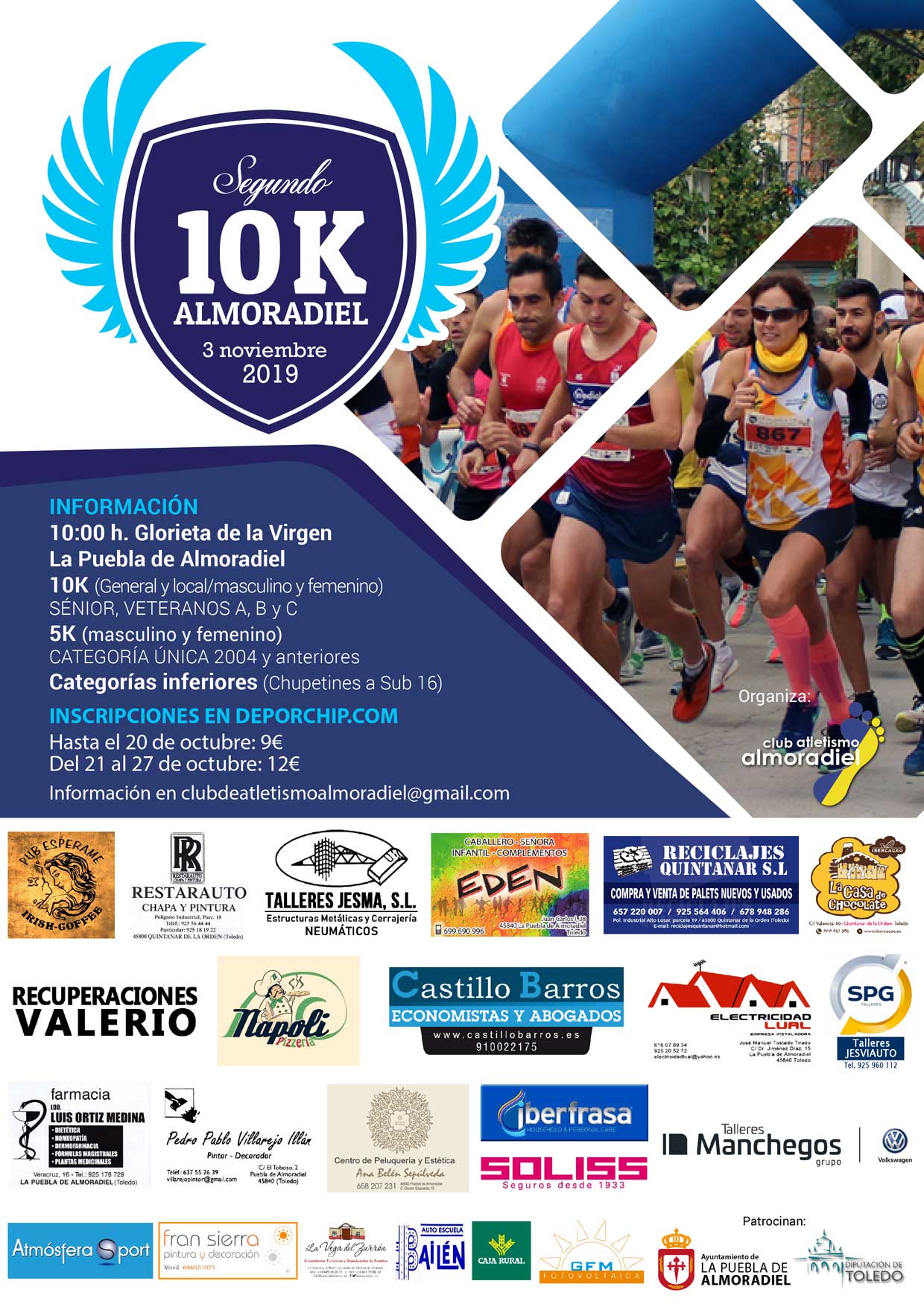 El 3 de noviembre de 2019, a las 10:00 h. en la Glorieta de la Virgen se celebrará la segunda edición de la 10K ALMORADIEL, carrera popular en la que los atletas podrán elegir entre dos distancias, 5 y 10 km, con un trazado mixmo (asfalto y camino)