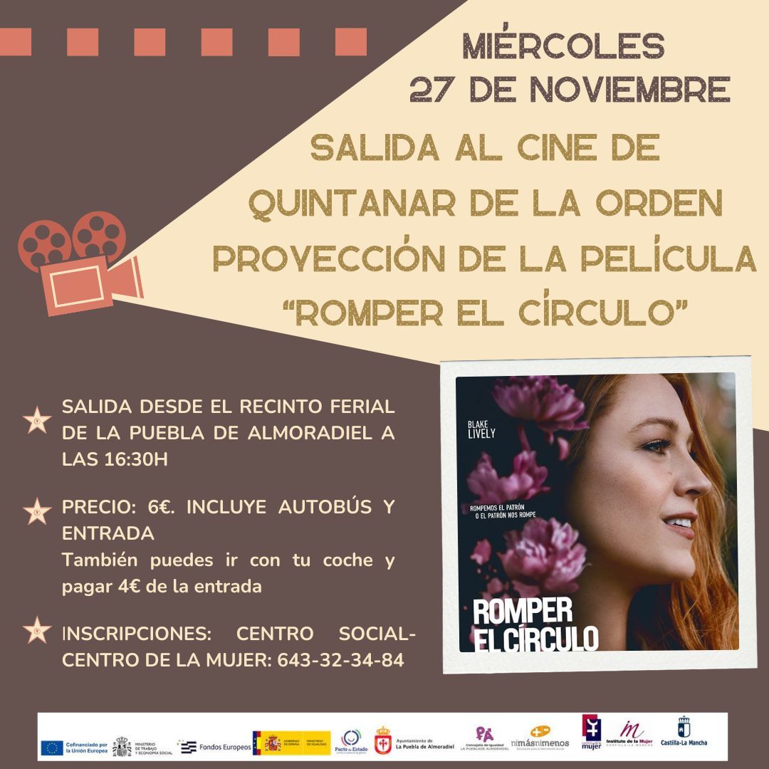 El próximo miércoles 27 de noviembre, se llevará a cabo una salida al cine de Quintanar de la Orden para disfrutar de la película Romper el círculo, protagonizada por Blake Lively. Este filme aborda temas relacionados con la violencia de género, ofreciendo una visión íntima y conmovedora sobre los retos y las esperanzas de quienes enfrentan esta realidad.
