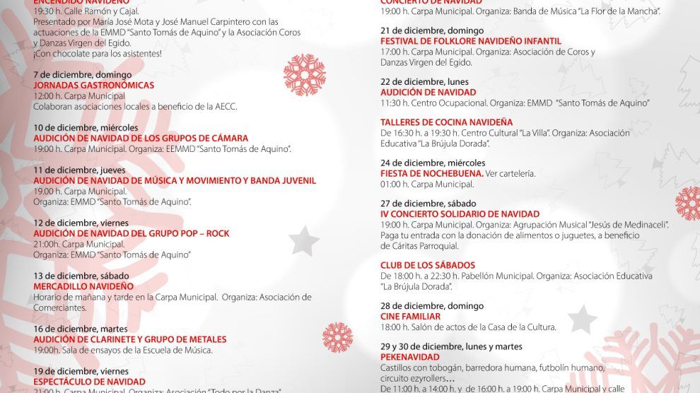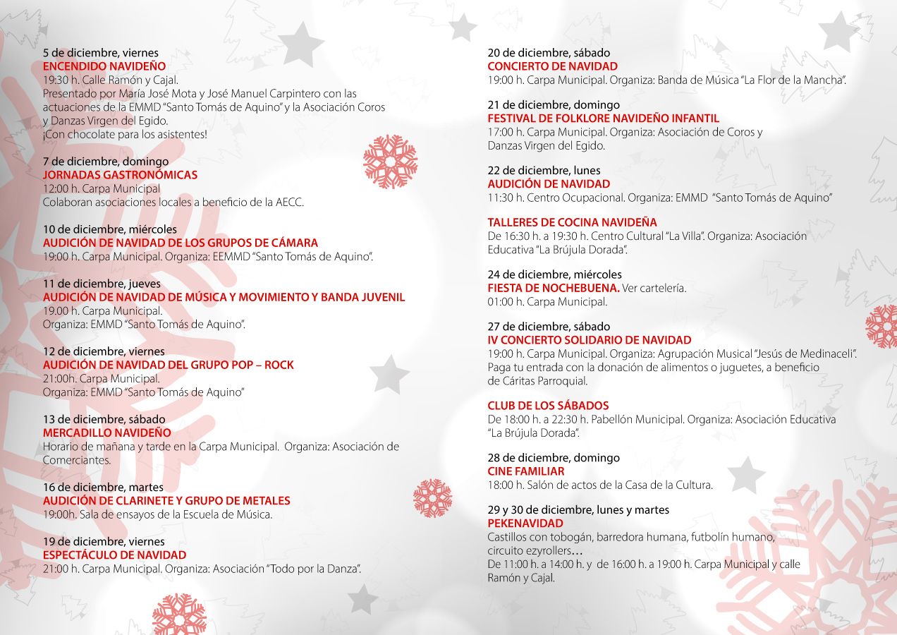 - Mercadillo Navideño: 13 de diciembre, sábado (Carpa Municipal).