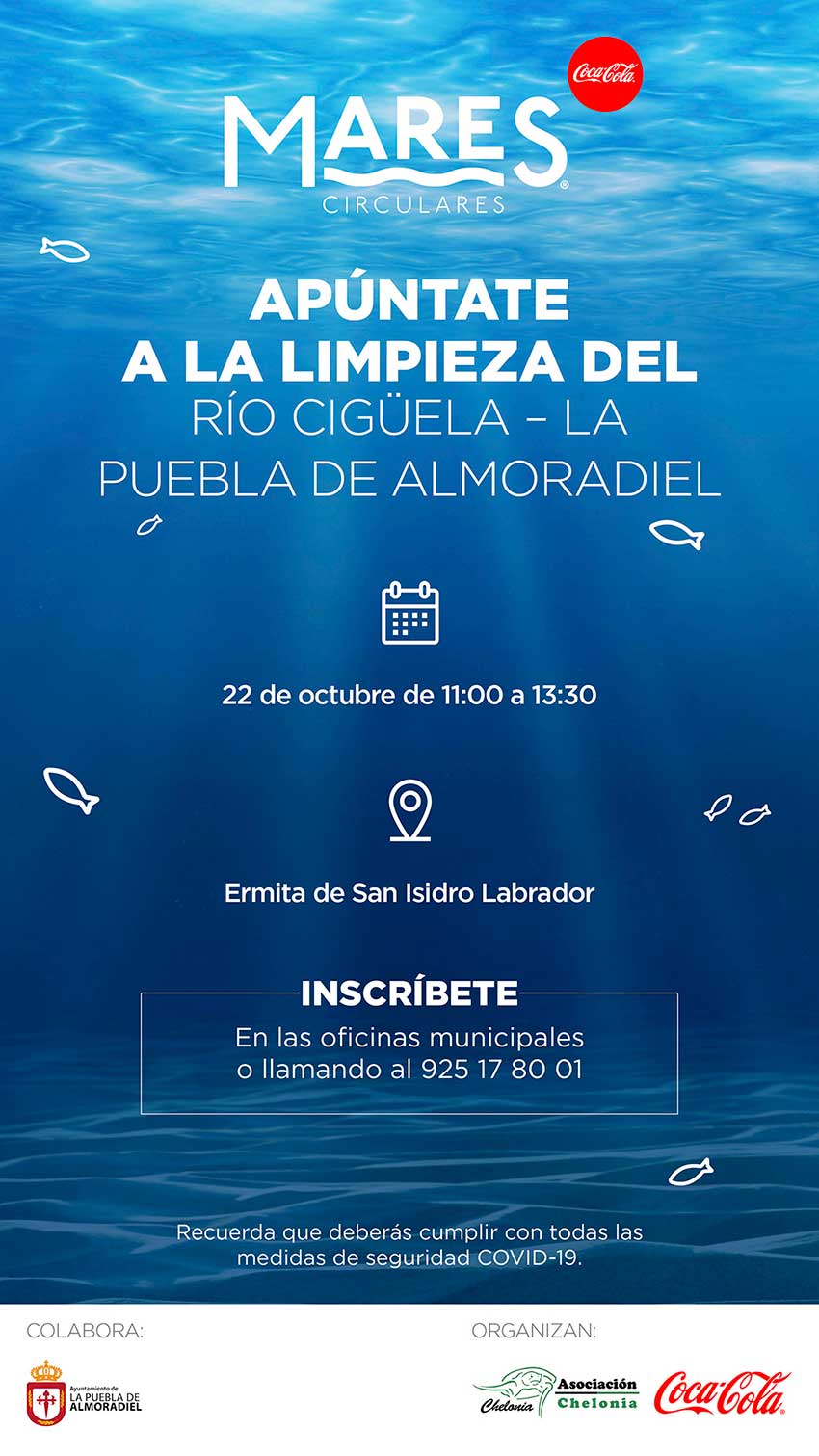 El próximo viernes, 22 de octubre, la Asociación Chelonia y Cola-Cola, con la colaboración del Ayuntamiento de La Puebla de Almoradiel celebrarán una jornada de limpieza del Río Gigüela.