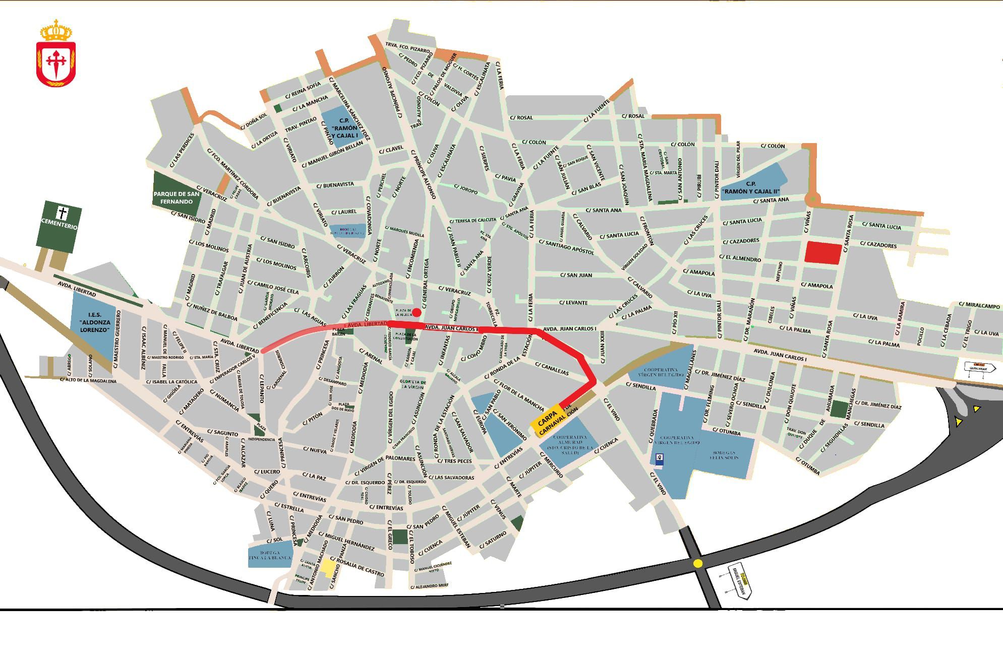 Os dejamos una nuestra del recurrido: como en desfile local, las comparsas saldrán de la Plaza de la Constitución y continuarán su recorrido por la Avenida Juan Carlos I (antigua carretera) hasta la Ermita del Cristo. Allí tomarán el Paseo del Santísimo Cristo de la Salud hasta el Prado de la Estación, donde estará situada la tribuna frente a la que realizarán el baile principal.