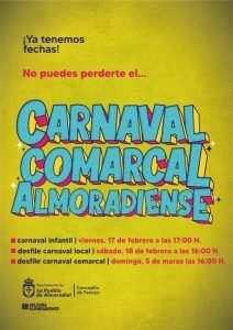 - Desfile de carnaval comarcal: domingo, 5 de marzo a las 16:00 h.