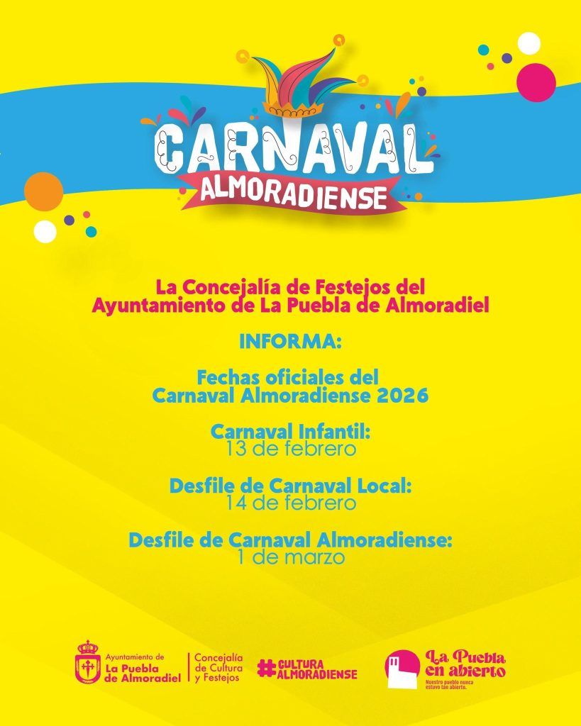 La Puebla de Almoradiel se prepara para vivir uno de los momentos más esperados del año: el Carnaval Almoradiense 2026. Desde el Ayuntamiento, a través de la Concejalía de Festejos, ya se han fijado las fechas y bases para unas jornadas llenas de color, música, imaginación y muchas ganas de pasarlo bien.