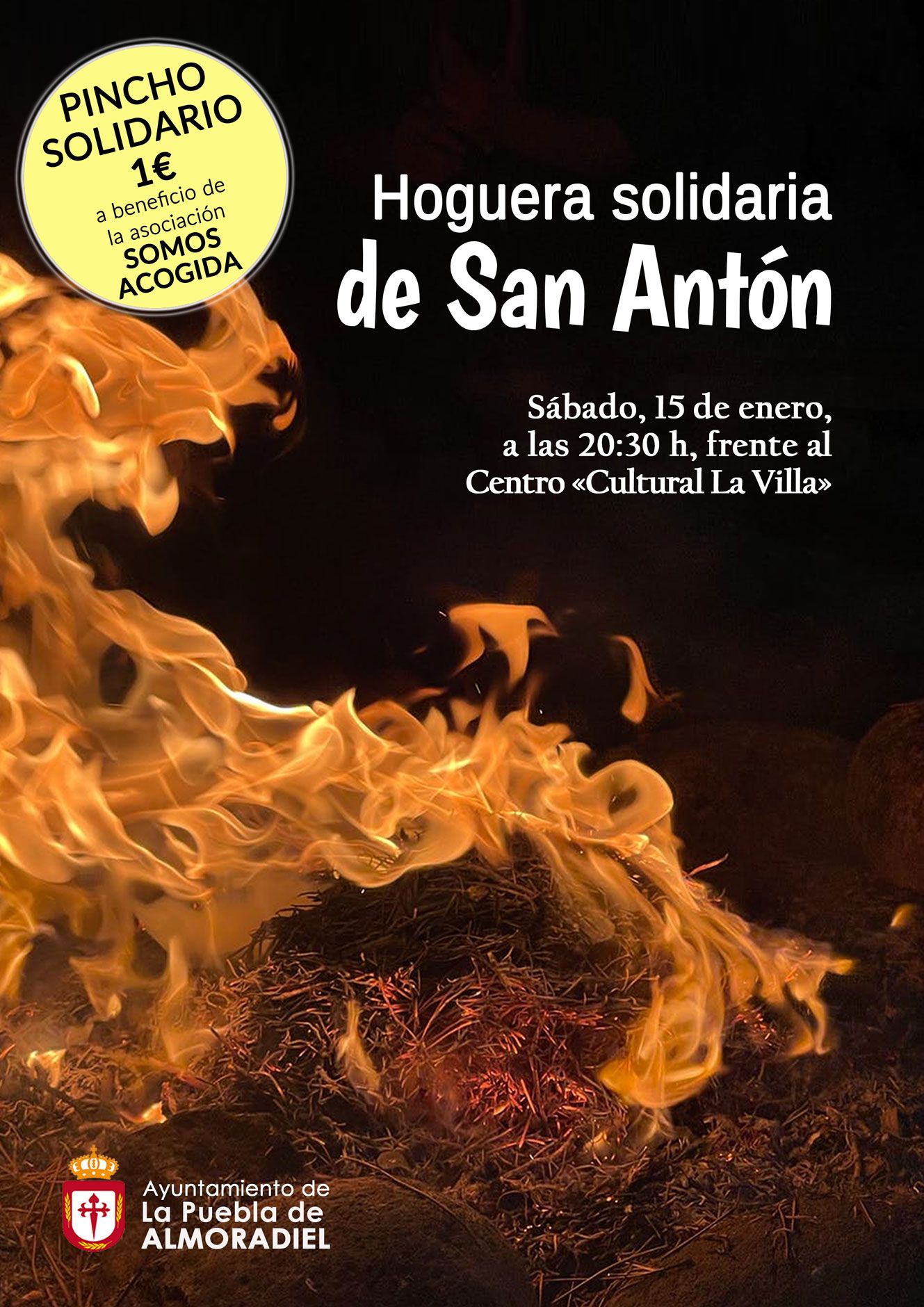 El sábado, 15 de enero, a las 19:00 h. en la Carpa Municipal, se podrá disfrutar de la actuación del grupo “Manchelos” y colaborar en la hoguera solidaria a beneficio de la asociación “Somos acogida”