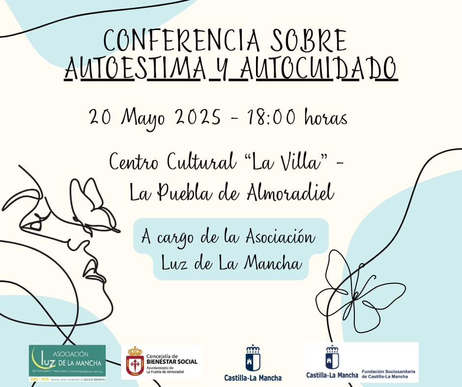 El próximo 20 de mayo a las 18:00 horas, el Centro Cultural “La Villa” será escenario de una interesante conferencia titulada “Autoestima y Autocuidado”, organizada por la Asociación Luz de La Mancha, en colaboración con la Concejalía de Bienestar Social del Ayuntamiento y la Fundación Sociosanitaria de Castilla-La Mancha.