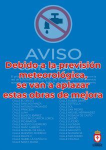 Debido a la previsión meteorológica, se van a aplazar estas obras de mejora. Se comunicará con la antelación suficiente la nueva fecha.
