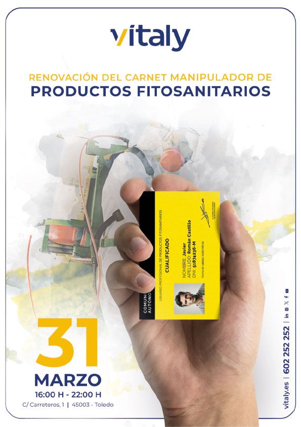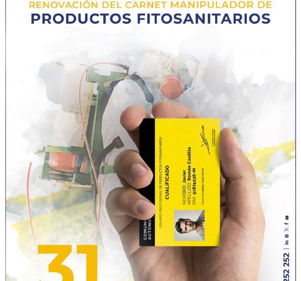Renovación del carnet de manipulador de productos fitosanitarios. Día 31 de marzo, de 16:00 a 22:00h.