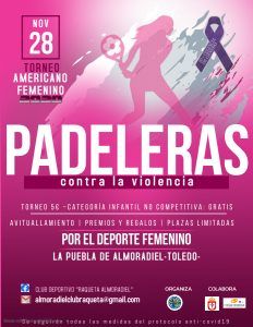 “Padeleras contra la violencia” es un torneo americano femenino de pádel que apuesta por el deporte en femenino que se celebrará el 28 de noviembre en La Puebla de Almoradiel