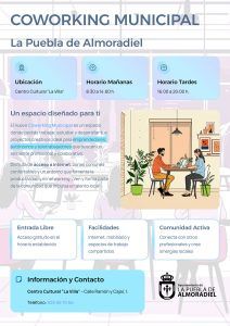 Ubicado en el Centro Cultural “La Villa”, este nuevo recurso municipal está dirigido especialmente a emprendedores, autónomos y teletrabajadores, así como a cualquier persona que necesite un lugar adecuado para concentrarse y trabajar.