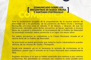 Ayuntamiento aytoalmoradiel 1 min. para leerlo Compartir ! FacebookXLinkedIn Cultura Este domingo arranca Almoradiel Lee 31 enero, 20251 min. para leerlo La Feria del Arte y la Palabra abre el Festival Literario “Almoradiel Lee”, no os lo podéis perder. . Descarga el programa de la novena edición [pdf] Quizás te interese Cultura Vuelve Almoradiel Lee! 10 octubre, 2025 Cultura Taller olfativo para el empoderamiento femenino 30 septiembre, 2025 Cultura Únete al nuevo Club de Lectura de novela histórica 24 septiembre, 2025 Presentamos la programación para el 8M, Día Internacional de las Mujeres IV Edición de Almoradiel Lee, el festival que pone a la Mancha a leer Compartir ! FacebookXLinkedIn Categorías Adjudicaciones4 Asociaciones53 Ayudas y Subvenciones1 Bandos38 Concursos6 Cultura140 Deportes183 Descarga de Impresos7 Documentos Municipales281 Educación y Formación123 Empleo59 Empresas103 Fiestas127 General357 Juntas de Gobierno10 Juventud41 Licitaciones11 Mayores14 Ordenanzas Municipales62 Perfil del Contratante4 Plenos24 Calendario de Noticias octubre 2025 L M X J V S D 12345 6789101112 13141516171819 20212223242526 2728293031 « Sep