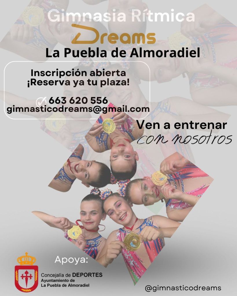 El Club Gimnástico DREAMS abre inscripciones para sus clases de Gimnasia Rítmica en La Puebla de Almoradiel, con el apoyo del Excmo. Ayuntamiento de nuestra localidad