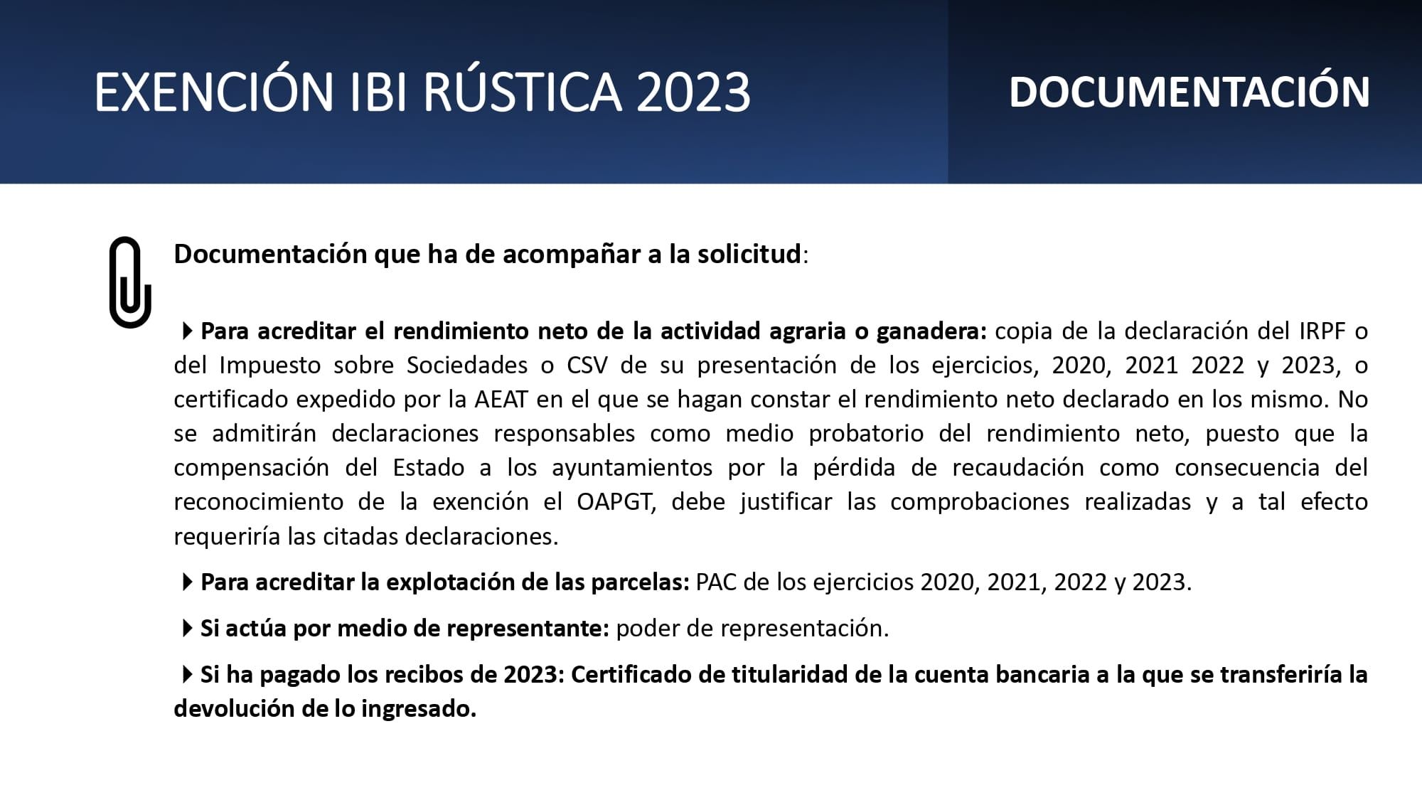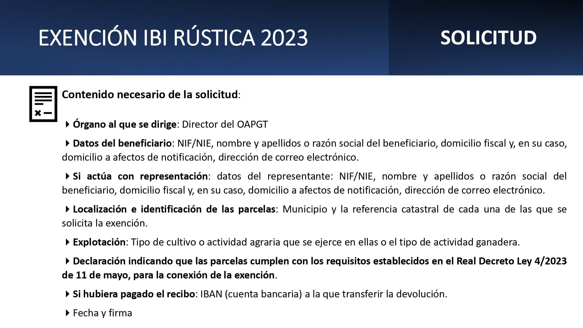 El órgano de recaudación de la provincia de Toledo ha publicado esta guía para solicitar la exención del pago del IBI de Rústica del año 2023