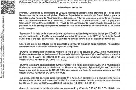Nueva resolución de la Consejería de Sanidad, una vez se han cumplido los 14 días desde las últimas medidas Nivel 2 de Castilla-La Mancha