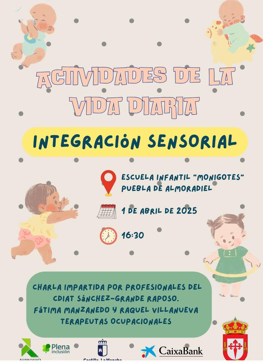 La Escuela Infantil “Monigotes” de Puebla de Almoradiel acogerá el próximo 1 de abril de 2025, a las 16:30 horas, una interesante charla sobre Integración Sensorial y Actividades de la Vida Diaria. Esta actividad, dirigida a familias, educadores y profesionales del sector infantil, está organizada por el CDIAT Sánchez-Grande Raposo y será impartida por las terapeutas ocupacionales Fátima Manzanedo y Raquel Villanueva.