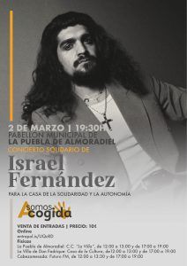 El 2 de marzo, a las 19:30h. el Pabellón Municipal de La Puebla de Almoradiel recibe a Israel Fernández, que dará un concierto solidario para la casa de la solidaridad y la autonomía de la asociación Somos Acogida