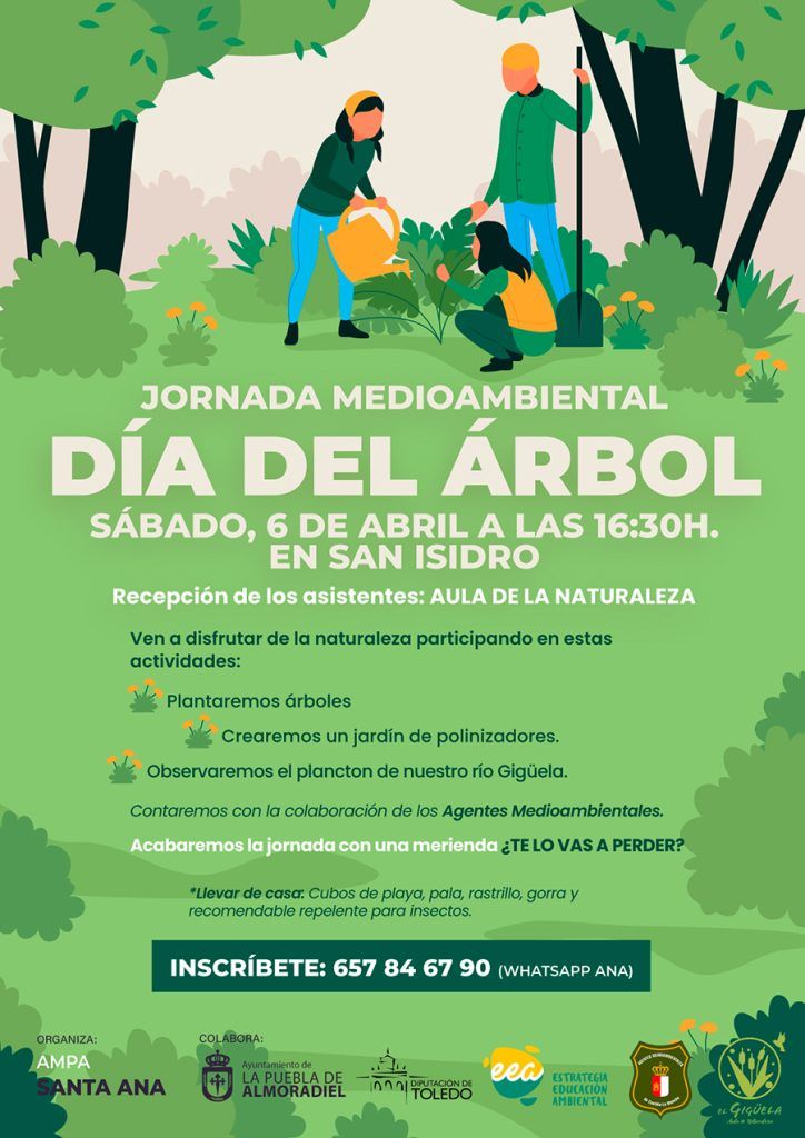 Con motivo de la celebración del día del árbol, el sábado 6 de abril, se llevará a cabo una “Jornada Medioambiental” organizada por AMPA SANTA ANA, con la colaboración del Ayuntamiento, la Diputación de Toledo y EEA, además de contar con la colaboración especial de los Agentes Medioambientales