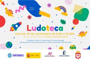 Dentro del Programa Corresponsables se oferta servicio de Ludoteca para el próximo viernes, 19 de noviembre de 9,30 a 12,30h.