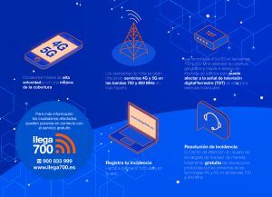 Para garantizar la compatibilidad de la nueva tecnología con la televisión digital terrestre (TDT), Llega700 es la entidad puesta en marcha por los operadores para solucionar cualquier afectación en la recepción de la señal de televisión.