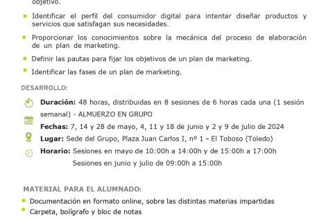 El curso es gratuito y se pagará el desplazamiento a los participantes, inscripciones abiertas hasta el 6 de Mayo