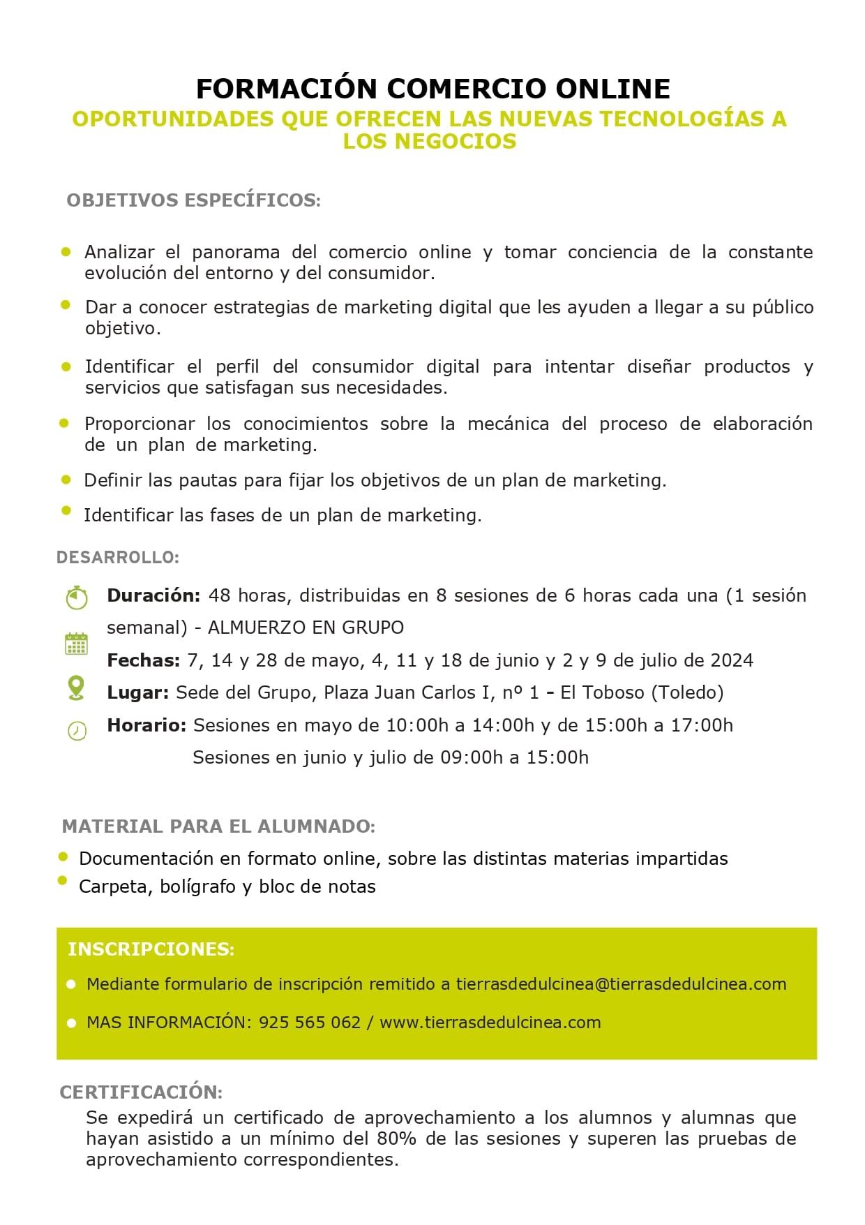 A través de la Asociación de Entidades Locales Dulcinea se ofrece formación de comercio online para negocios locales: “Oportunidades que ofrecen las nuevas tecnologías a los negocios”