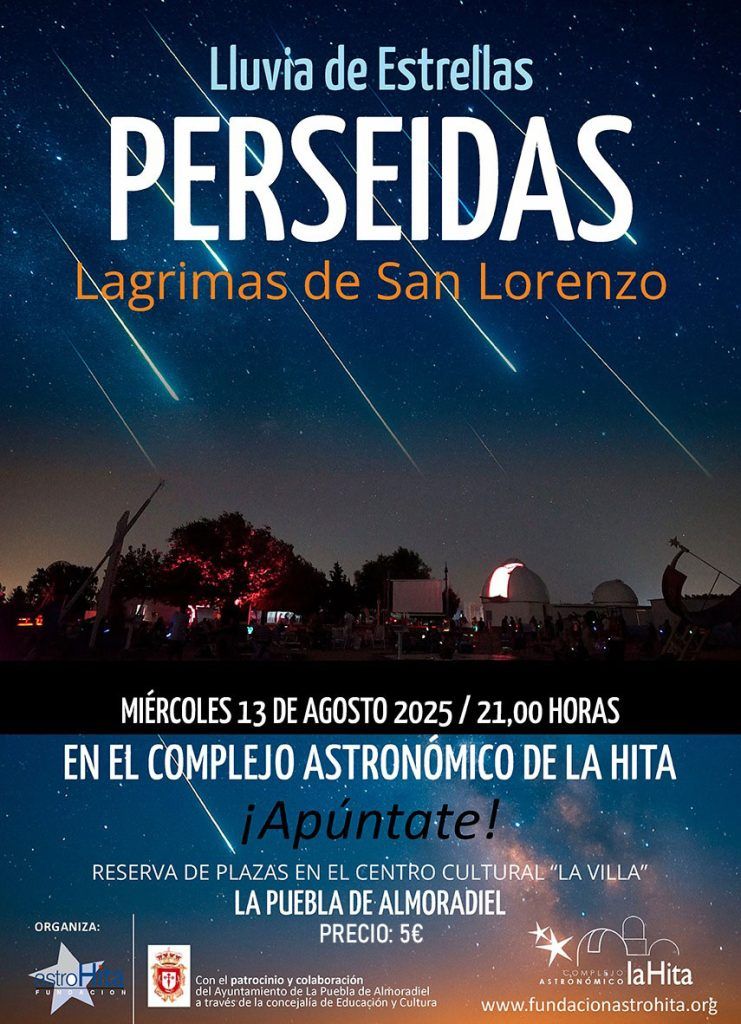 Organizado por la Fundación AstroHita, con el patrocinio y colaboración del Ayuntamiento de La Puebla de Almoradiel, a través de la Concejalía de Educación y Cultura, esta actividad permite observar la lluvia de estrellas en uno de los espacios más emblemáticos y preparados para la divulgación científica de toda la región.