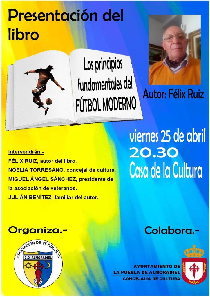 a Concejalía de Cultura del Ayuntamiento de La Puebla de Almoradiel tiene el placer de invitar a toda la ciudadanía a la presentación del libro “Los principios fundamentales del fútbol moderno”, escrito por el autor local Félix Ruiz.