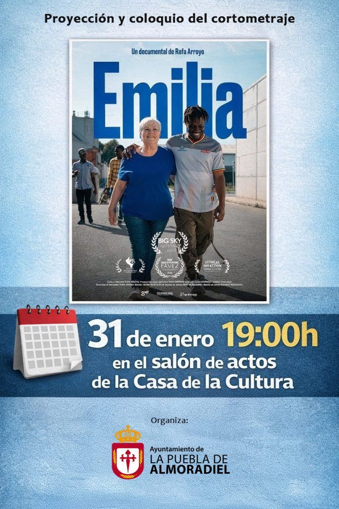 El próximo sábado 31 de enero, La Puebla de Almoradiel acogerá la proyección del cortometraje documental Emilia, dirigido por Rafa Arroyo, una obra que invita a la reflexión y al diálogo social.