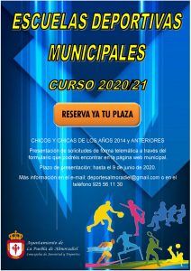 Abierto el plazo de reserva de plaza para las escuelas deportivas municipales para el curso 2020/21. Solo tienes que acceder el cuestionario pinchando en el siguiente enlace