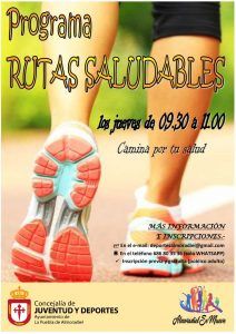Los jueves de 9.30 a 11.00 h. camina por tu salud con el “Programa de rutas saludables” que organiza la Concejalía de Juventud y Deportes