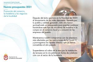 En esta presentación el Ayuntamiento muestra cuáles son las principales novedades que aplica en nuestro pueblo este Presupuesto Municipal 2021.