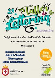 La Concejalía de Bienestar Social, a través del Centro de Día “Santo Tomás”, laza el taller de iniciación al Lettering dirigido a chicas y chicos de 4º a 6º de Primaria.