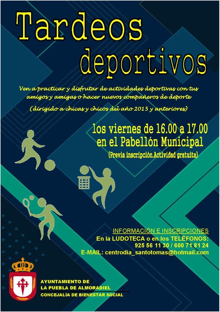 Los Tardeos Deportivos se celebrarán todos los viernes, de 16:00 a 17:00 horas, en el Pabellón Municipal, y la actividad es gratuita, aunque requiere inscripción previa.