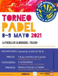 El próximo 8 y 9 de mayo de 2021 el Club de Raqueta Almoradiel vuelve a la carga con un “Torneo de Padel”