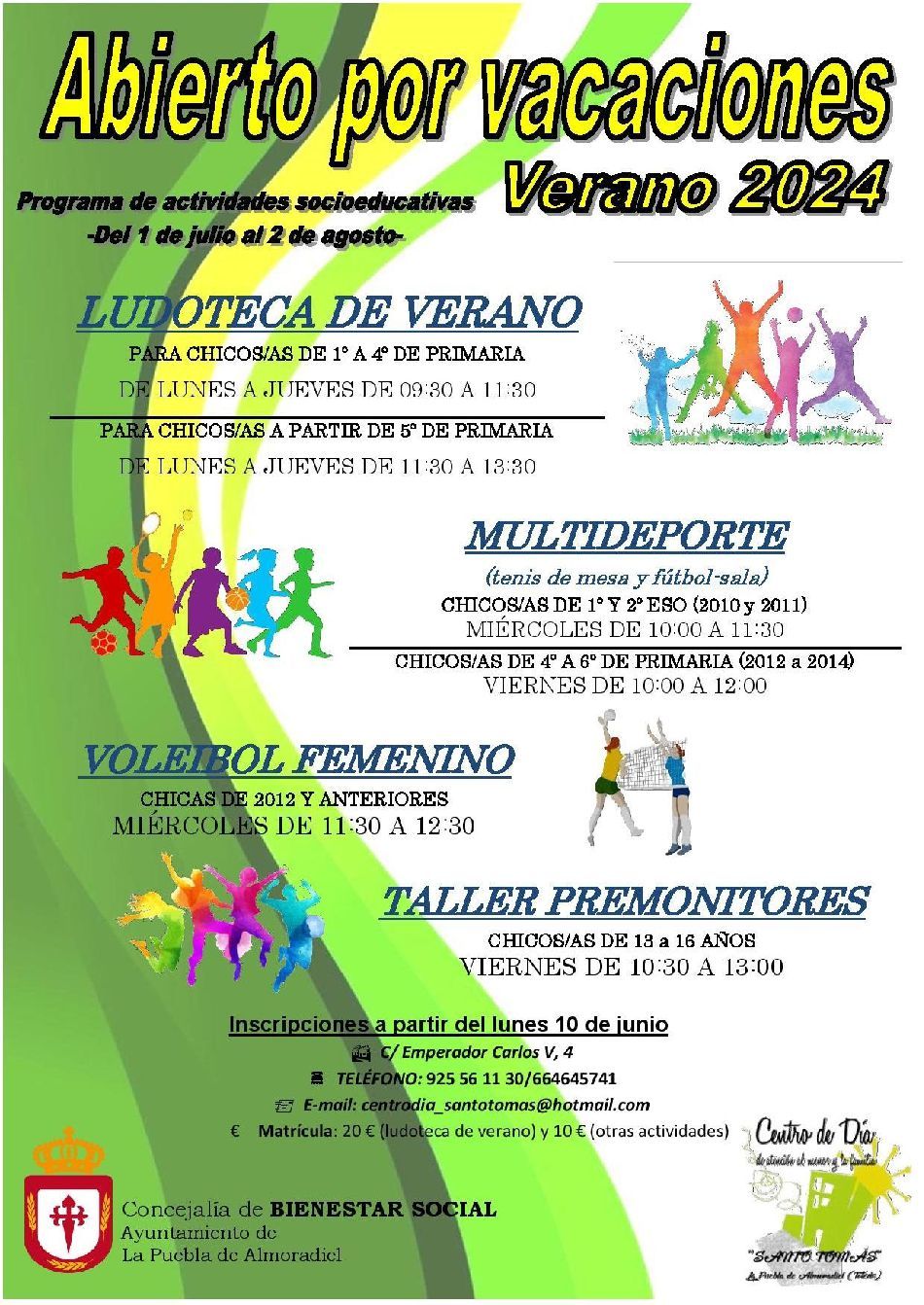La Concejalía de Bienestar social se complace en anunciar el Programa de Actividades Socioeducativas “Abierto por Vacaciones”, diseñado especialmente para niños y jóvenes ¡Es hora de disfrutar, aprender y crear recuerdos inolvidables!