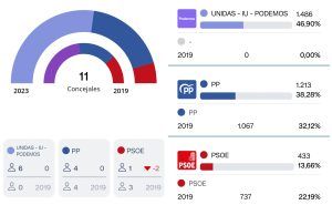 En votos, los de Alberto Tostado obtuvieron 1.486 (el 46’9%), mientras que el PP sumó 1.213 (el 38’28%) y PSOE 433 (13’66%).