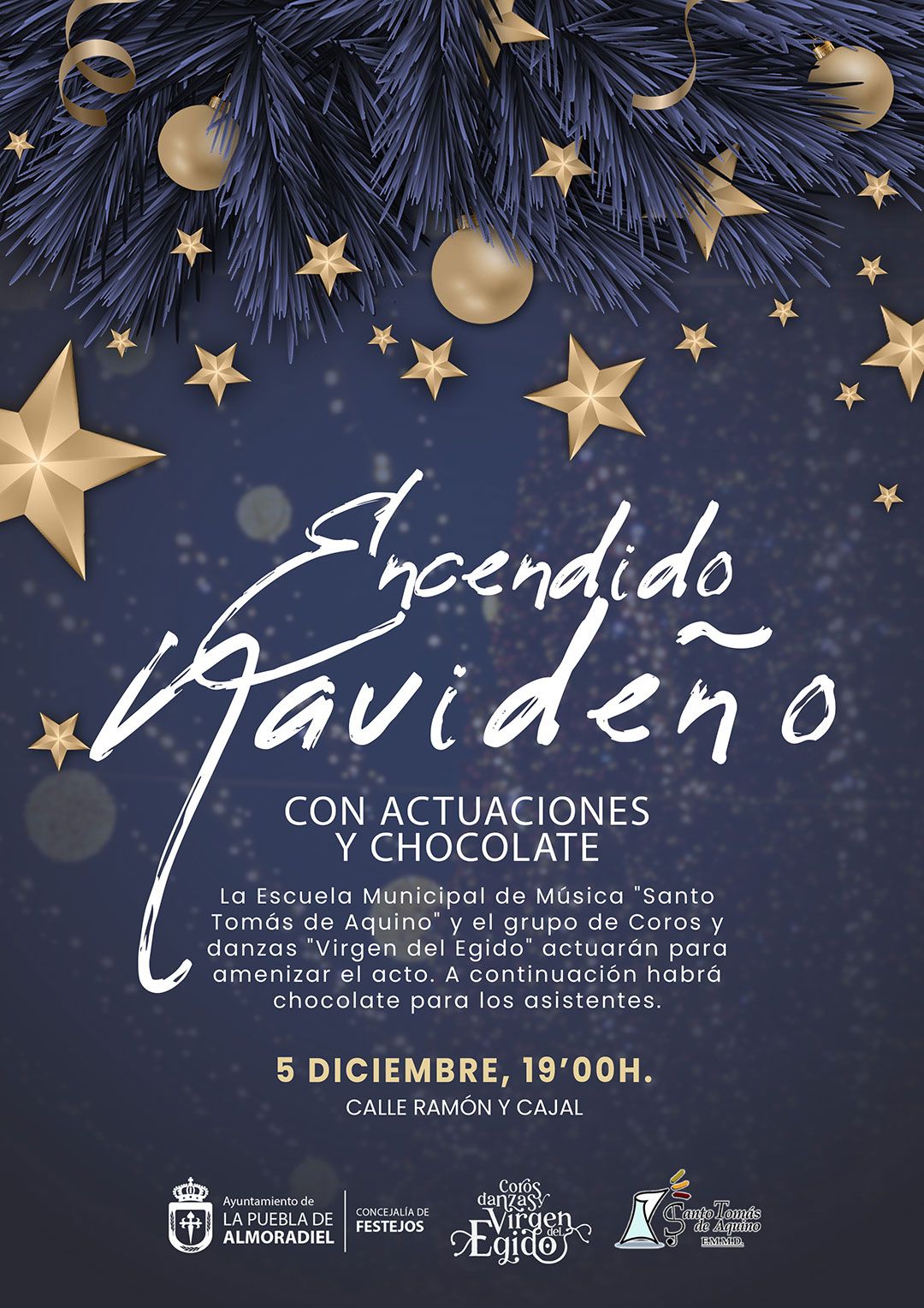 El próximo jueves, 5 de diciembre, a las 19:00 horas, tendrá lugar el esperado Encendido Navideño en la Calle Ramón y Cajal. Este acto, organizado por el Ayuntamiento a través de la Concejalía de Festejos, contará con las actuaciones de la Escuela Municipal de Música “Santo Tomás de Aquino” y el grupo de Coros y Danzas “Virgen del Egido”, quienes llenarán la velada de música y tradición.