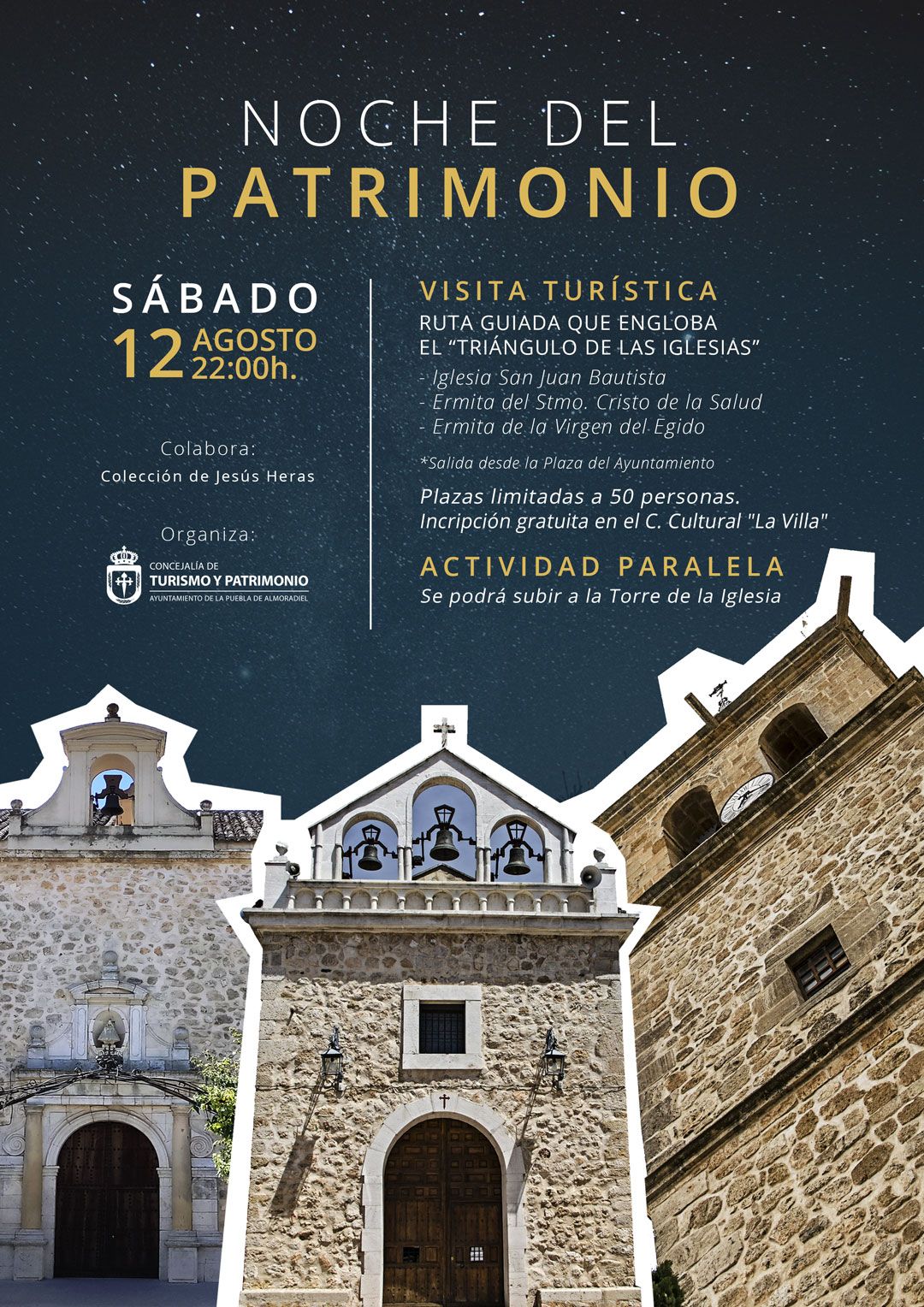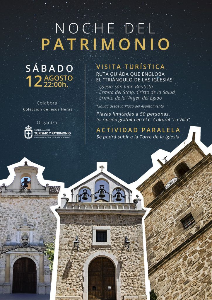 La Concejalía de Turismo y Patrimonio del Ayuntamiento de La Puebla de Almoradiel organiza el próximo 12 de agosto la “Noche del Patrimonio” durante la cual habrá una visita turística por el “Triángulo de las Iglesias” y se podrá subir a la torre de la Iglesia