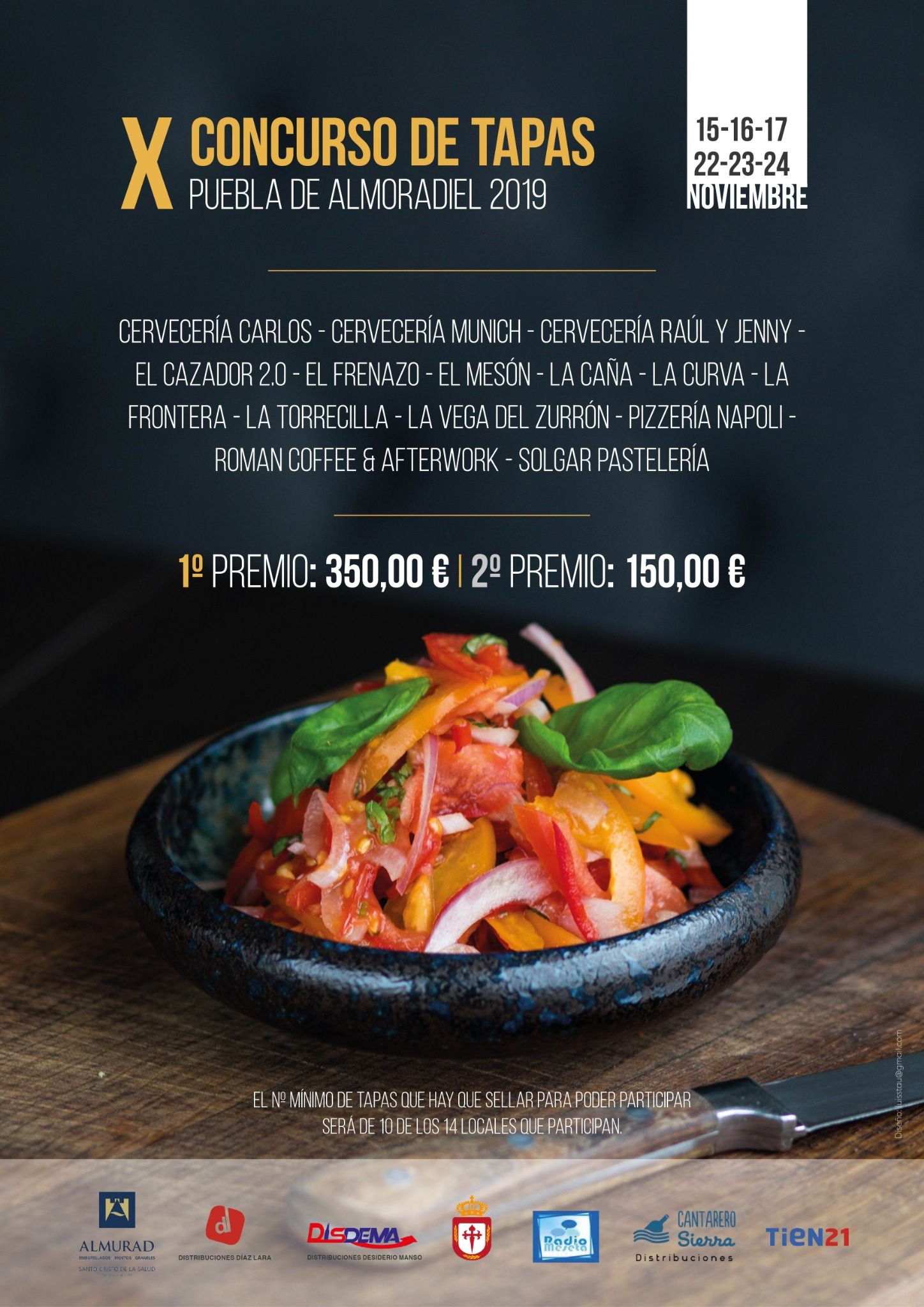 Este fin de semana comienza el “X Concurso de tapas”, en el cual participarán catorce bares y restaurantes, que con su original tapa nos harán disfrutar durante los días 15, 16, 17, 22, 23 y 24 de noviembre